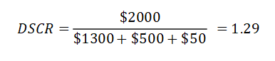 DSCR 就是房租的月出租收入和房屋的每月还款额、地税、保险以及物业管理费的比率。
